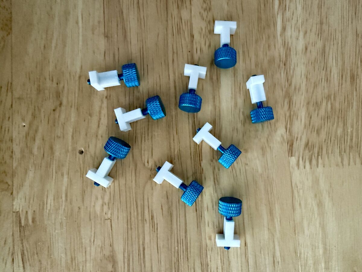 Received my order quickly. I tapped the holes in the center of the parts with no issues. I was worried the wall thickness was pretty thin and they may crack but they work great for holding my little fine threaded thumbscrews.